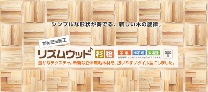 リズムウッドの現物サンプルについては不燃杉にてご用意させて頂いております。